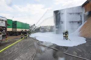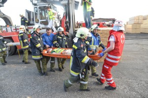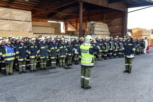 Insgesamt 105 Feuerwehrmänner, drei Mitarbeiter des Roten Kreuzes und der Arbeitsmediziner übten beim angenommenen Großbrand des UPM Sägewerkes. Die Aufgabenstellung reichte von der Gebäudeevakuierung und Bergung eines vermissten Mitarbeiters durch den Atemschutztrupp, über den Aufbau einer Ersatzwasserversorgung aufgrund einer kaputten Sprinkleranlage, der Abschirmung umgebender Gebäude und Holzlager bis zu einem zusätzlich arrangierten Unfall der Einsatzkräfte mitten im Brandgeschehen.