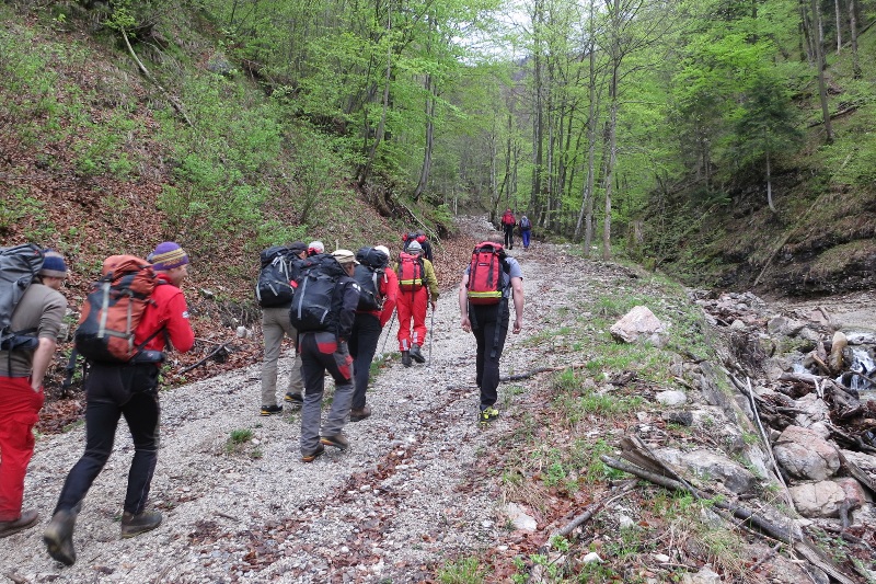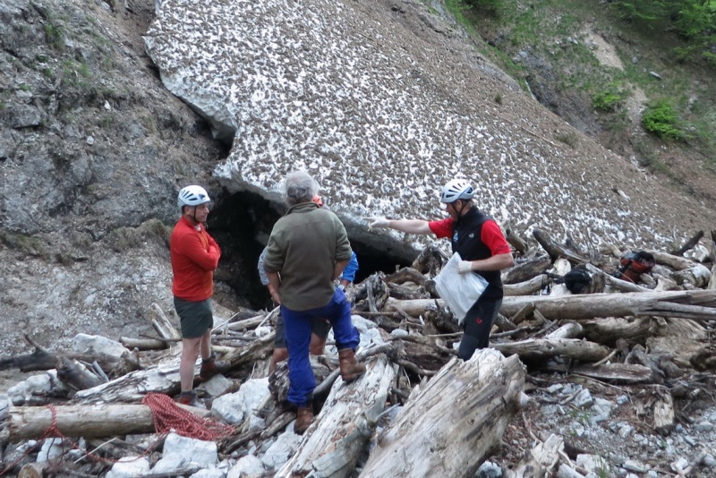 Aber auch einen Reißverschluß mit Kleidungsresten. Bei einer neuerlichen Suche am Mittwochnachmittag fand man auf 800m Seehähe im Bereich eines großen Schnee und Lawinenkegel einen Protector und eine Schibrille. Wenig später um 18:15 schließlich auch die Leiche des Vermissten im Bachbett oberhalb eines Wasserfalls. Erfolgreicher Suchausgang mit traurigem Ende. In Summe 10 Mannschaftssuchtage mit 970 Stunden durch die Bergrettung und viele viele ungezählte Stunden.