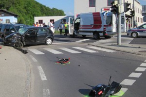 Der 21-Jährige wurde durch den Zusammenstoß vom Motorrad geschleudert, prallte noch gegen ein stehendes Auto einer 39-Jährigen aus Frankenmarkt und kam in weiterer Folge auf der Fahrbahn zum Liegen. Im Auto der 31-Jährigen saß ein 35-Jähriger aus Ruhstorf an der Rott, der durch den Unfall leicht verletzt wurde.
