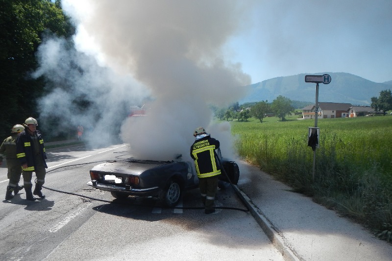 „Bereits auf der Anfahrt war von weitem eine große Rauchsäule sichtbar.“, berichtet Feuerwehrmann Wilfried Fischer Ortner. Mittels HD-Strahlrohren wurde der Brand abgelöscht. „Erschwerend bei diesem Einsatz war die hohe Außentemperatur (knapp 30 Grad) und teilweise unvernünftige Autolenker, die aus der stehenden Kolonne ohne Rücksicht auf die Einsatzfahrzeuge versuchten einfach umzudrehen. Das Fahrzeug, ein fast 40 Jahre altes, frisch restaurierter Oldtimer wurde trotz unseres schnellen Eingreifens ein Raub der Flammen. Verletzt wurde bei diesem Brand niemand.“, so Fischer-Ortner.