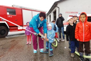 Kindergerecht und Schritt für Schritt. Natürlich wurde auch so manches Gerät angegriffen und ausprobiert, schlussendlich durften die Kinder und auch die Pädagoginnen mit einem Strahlrohr spritzen. Als Draufgabe gab es noch für jeden kleinen Besucher ein Eis und ein Getränk. Alles in allem, war es ein gelungener Vormittag der nicht nur den Kindern Spaß gemacht hat.