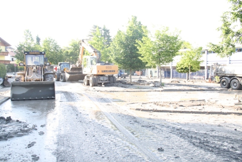 Mit Pumpen, Schaufeln und durch Wegspülen wurden so viele Verunreinigungen wie möglich zu beseitigt. Des Weiteren wurde der Parkplatz vor dem Freibad mit Baggern und Hochdruckstrahlrohren gereinigt. Um 18:15 Uhr kamen alle Männer wieder in Windern an, die Reinigungsarbeiten dauerten anschließend noch bis ca. 20:00 Uhr.