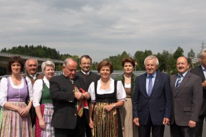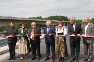 Mit einer Zufahrtsstraße mit eigener Brücke über die Traun, die Grundstückseigentümer Hans Asamer finanzierte, wurde schließlich eine passende Lösung gefunden. Von nun an können die LKW direkt die Autobahnabfahrt Laakirchen West (vormals Steyrermühl) nehmen und über die neugestaltete Autobahnabfahrt direkt zum Rewe-Auslieferungslager zufahren. Die feierliche Brückeneröffnung fand am Freitagnachmittag im Beisein zahlreicher Ehrengäste aus Politik, Wirtschaft und Anrainern statt.