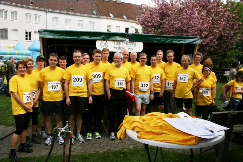 31 Hobbysportler der Pfarre Attnang-Hl. Geist haben bei der bekannten Attnanger Meile eine besondere Leistung erbracht: Auf Initiative von Pfarrgemeinderatsobmann Christian Mittendorfer beteiligten sich Mitglieder des Pfarrgemeinderates, der Fachausschüsse, der Ministranten und Menschen die sich mit der Heilig-Geist-Gemeinde verbunden fühlen. Mit eigenen, knallgelben Leiberln, die von der Volksbank und Intersport Bauer gesponsert wurden, machten die Pfarrläufer auch optisch auf sich aufmerksam.