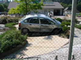 Wie durch ein Wunder wurde bei diesem Unfall niemand verletzt. Am Fahrzeug und an der Gartenanlage entstand erheblicher Sachschaden. Während der Bergungsmaßnahmen musste die Bundesstraße einseitig gesperrt werden.