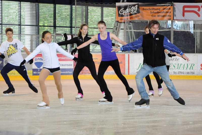Die jüngsten Nachwuchskaderathleten dürfen mit ihren Vorbildern, darunter EM und WM Teilnehmer wie Kerstin Frank, Belinda Schönerberger, Barbora Silna und Juri Kurakin, Severin Kiefer, Miriam Ziegler, Lokalmatador Manuel Koll und vielen mehr dass Training On und Off-Ice bestreiten. Skating Skills und Ausdrucksschulung sind die Schwerpunkte des Workshops, der vom italienischen Spitzentrainer Andrea Gilardi geleitet wird.