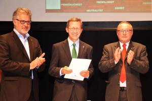 Denn Peter Salinger bekam nicht nur das Goldene Dienstjahresabzeichen verliehen, die gesamte Versammlung gratulierte „ihrem Chef“ auch mit Standing Ovations zur Verleihung des großen Ehrenzeichens für Verdienste um die Republik Österreich durch den Landeshauptmann.