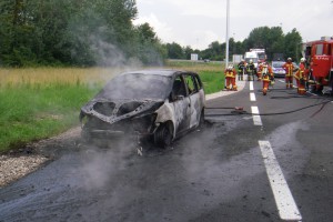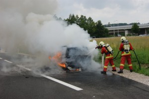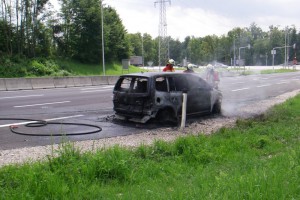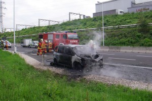 Ein VW Touran wurde am Donnerstagnachmittag ein Raub der Flammen. Aus noch unbekannter Ursache fing das Auto im Bereich der Autobahnabfahrt Steyrermühl (Laakirchen West) an zu brennen. Der Lenker aus dem Bezirk Vöcklabruck blieb unverletzt. Der VW Touran brannte völlig aus. Der Sachschaden ist enorm.