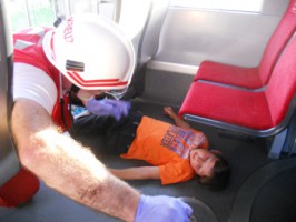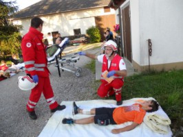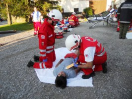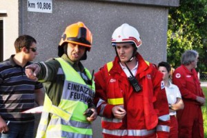 Der Lenker des Fahrzeuges konnte nur mit Schere und Spreizer befreit werden. Die verletzten Personen wurden von der Feuerwehrjugend authentisch gespielt und bereits zuvor von Mitarbeitern des Roten Kreuzes realitätsnah mit Verletzungen und Brandwunden geschminkt. Sie wurden kompetent vom Notarzt und den 9 Sanitätern versorgt. Seitens der Übungsverantwortlichen Rotes Kreuz, Feuerwehr und Stern & Hafferl verlief die Übung realistisch und zielführend.