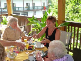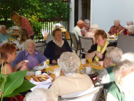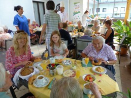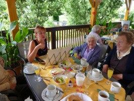 Pünktlich um 8 Uhr trafen sich heute Freitag 19.07 die Bewohner und Mitarbeiter des Bezirksseniorenheims Vorchdorf zum gemeinsamen Frühstück auf der Terrasse das regen Zuspruch fand. Eine willkommene Abwechslung im Heimalltag mit musikalischer Untermalung durch Cilly Peyer an der Zither, die Gaumen verwöhnte in bewährter Weise unser Küchenteam.