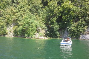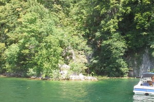 Unwahrscheinliches Glück hatten die Menschen auf dem Boot, das am Ostufer des Traunsees auf Höhe Karbach vor Anker lag. Der etwa ein Kubikmeter große Gesteinsbrocken raste aus 100 Meter Höhe Richtung See und riss mehrere Bäume mit, bevor er nur wenige Meter von dem Boot entfernt in den Traunsee stürzte.