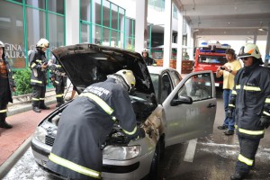 Am Montagnachmittag fing vermutlich aufgrund eines technischen Gebrechens in der Durchfahrt des Gmundner Salzkammergut Einkaufsparks (SEP) ein Fahrzeug im Motorraum an zu brennen.