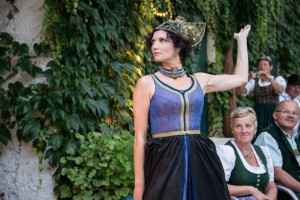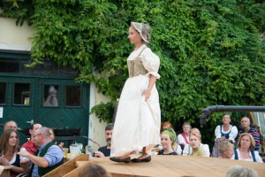 Außergewöhnlich: die Modelle der Wiener Designerin Susanne Bisovsky, die als Anregung zu Goldhauben-Ensembles getragen wurden. Ungewöhnlich fundiert und historisch anregend auch die Moderation von Mag. Barbara Kern (Hand.Werk.Haus) und Hans Köhl (GF Salzburger Heimatwerk). Eine tolle Zusammenarbeit unter Mitarbeit der Goldhaubengruppen Bad Goisern und St. Wolfgang u.v.a. mit einem zukunftsweisenden Resultat.