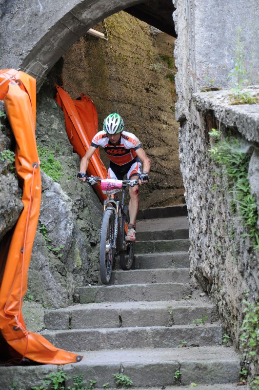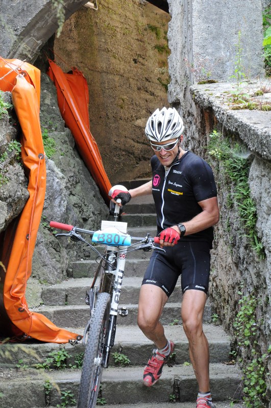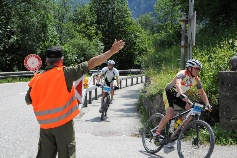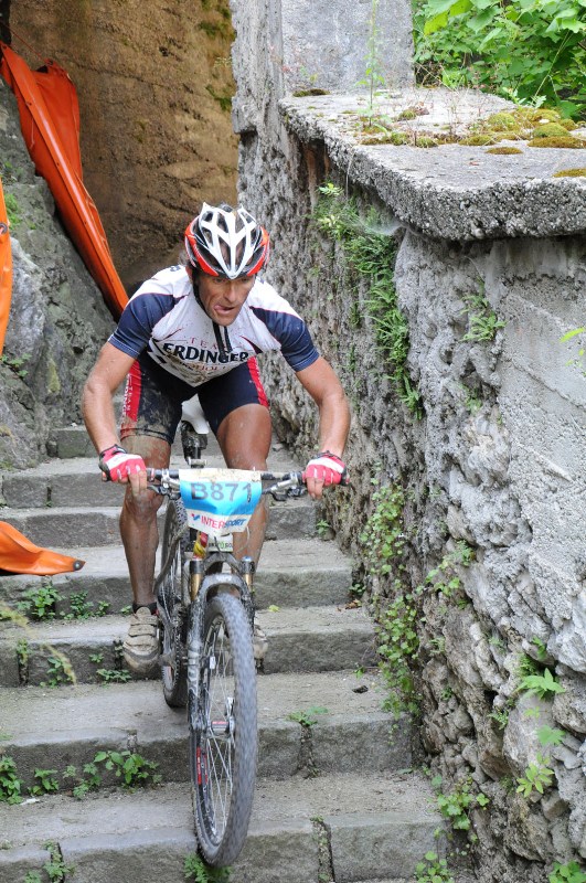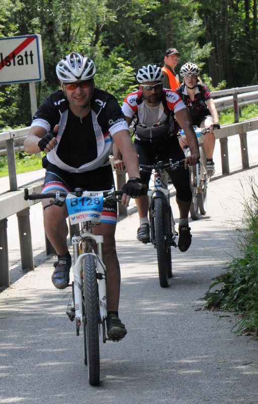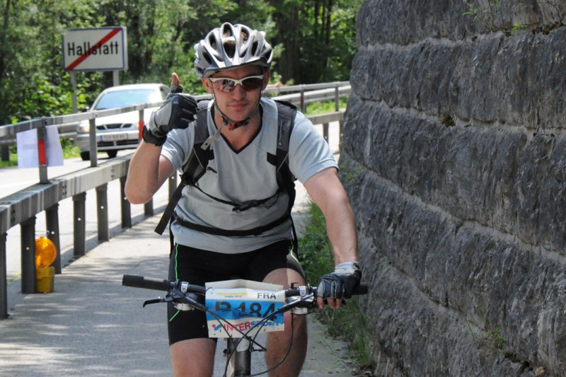 Komplett erschöpft und mit zerfetzten Team Dress wurde Wolfgang in Bad Goisern von den tausenden Besuchern empfangen. Rund 3 Stunden war der Saunameister mit einer 8 köpfigen Spitzengruppe unterwegs bis sein Freund Leon Luis Pinto eine feurige Attacke setzte, und dadurch die Gruppe zersprengte. Wolfgang fuhr sein Tempo weiter und ließ sich von keinen enormen Tempoverschärfungen beirren. Der Sieger von 2011 stieg nach 4 Stunden bei einer Wasserrille unfreiwillig vom Rad und hatte richtiges Glück im Unglück.