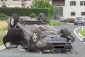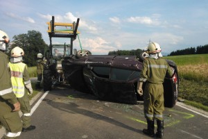 Im Bereich von Unterthumberg ist ein Autofahrer aus noch unbekannter Ursache auf das Bankett geraten. Foglich verlor er die Kontrolle über sein Fahrzeug. Das Auto überschlug sich und kam am Dach liegend auf der Straße zum Stehen. „Nach der Unfallaufnahme der Polizei begannen wir mit den Aufräumarbeiten und führten die Fahrzeugbergung durch. Der Verletzte wurde von der Rettung ins Krankenhaus Vöcklabruck gebracht.“, sagt Johannes Möslinger von der Feuerwehr Wegleiten.