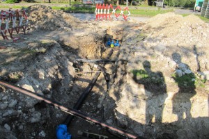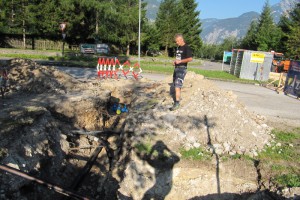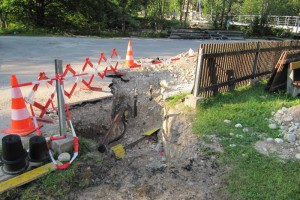 Gleichzeitig mit der neuen Wasserleitung wurden auch die Leitungen der Energie AG und der Telekom verlegt. Kosten für die Sanierung der Wasserleitung: € 30.000,-! Nun konnte die Versorgungsleitung wieder hergestellt werden und die Ringleitung aktiviert werden. Damit ist die Versorgung auch bei künftigen und extremen Hochwasserereignissen sichergestellt.