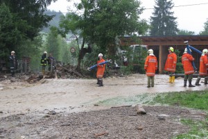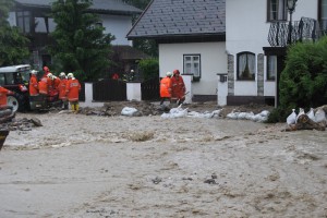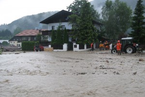 „Nach kurzer Lagebesprechung im Feuerwehrhaus Oberwang wurden wir zum Sägewerk Schindlauer beordert, dort war das Haus im Erdgeschoß einen halben  Meter unter Wasser. Auch die umliegenden Gebäude, Hauser und Garagen waren überflutet. Die Zufahrtsstraße wurde weggerissen und wir mussten die gesamten Gerätschaften mit Traktoren zu den Häusern bringen. Mit Baggern wurde beim Bach ein Damm errichtet und eine provisorische Straße errichtet. Danach konnten wir mit den Fahrzeugen zu den Häusern vorrücken und mit dem Aufräumen beginnen.“, berichtet die Freiwillige Feuerwehr St. Georgen i. A!