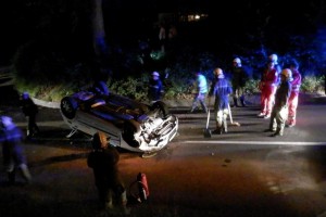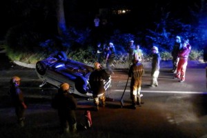 „Beim Eintreffen am Einsatzort wurde folgende Lage vorgefunden: Rotes Kreuz und Polizei waren bereits vor Ort, ein PKW lag mitten auf der Straße am Fahrzeugdach, der Unfalllenker war nicht auffindbar.“, berichtet Josef Leeb von der Feuerwehr Seewalchen.