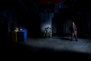 Die Szenerie passt vortrefflich in das Ambiente einer (saisonbedingt) still gelegten Betriebsanlage. Nichts geht mehr, Töne aus Stahl, Lichtinstallationen und die künstlich erzeugte Enge des Raumes durch meterhohe Kunststoffnetze mögen dazu beitragen, dass sich die ZuseherInnen ein wenig unwohl fühlen können. Und dennoch, das „Spiel“ ist nicht ohne Witz, auch wenn dieser nicht gleich breit daherkommt wie bei klassischen Komödien.