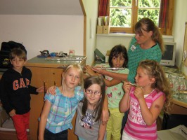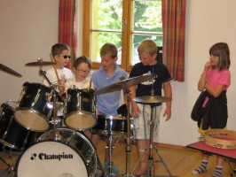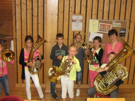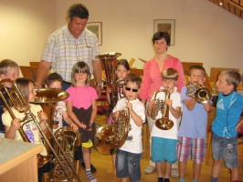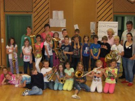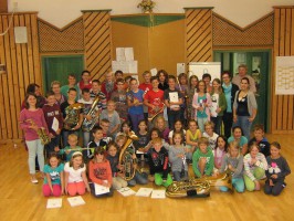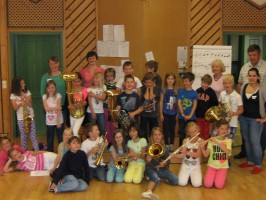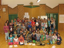 Um den Kindern das Hobby Musik wieder etwas näher zu bringen wurden die Volksschulkinder in der letzten Schulwoche vom Musikverein Neukirchen bei Altmünster zu einigen Stunden ins Vereinsheim eingeladen. Nach einer geklatschten Einführung – um einen Rhythmus begreifbar zu machen – erklärten wir den Kindern die Begriffe „Notenschlüssel“, „Halbe-, Viertel- und Achtelnote“ sowie „Melodie“.