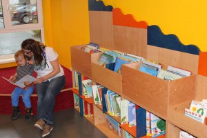 Die neue Bibliothek ist geräumig und wirkt durch die vielen Fenster und die bunt gestrichenen Wände sehr freundlich und einladend. Besonders freuen wir uns darüber, dass die Räumlichkeiten der neuen Bibliothek sehr großzügig angelegt sind. Neben den Bücherregalen bleibt noch viel Platz für gemütliche Sitzgelegenheiten.