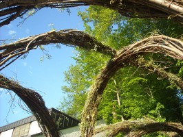 Klingt einfach, stellte das Team jedoch vor die ein oder andere Herausforderung, wie kaum durchdringbaren Boden, widerspenstige Äste und ein Tag mit sehr viel Regen. Speziell das Formen der Weidenbögen erforderte neben großem Kraftaufwand auch das nötige Auge, um eine gleichmäßige Rundung zu erzielen.