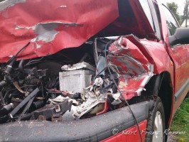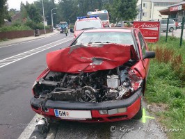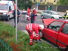 Durch die Wucht des Aufpralls wurde das Auto etwa 20m zurückgeschoben und blieb auf dem Gehsteig stehen. Der verletzte Fahrer wurde vom Roten Kreuz erstversorgt und ins Krankenhaus gebracht. Für die Aufräumarbeiten wurde der Vekehr auf der B145 wechselseitig angehalten, was zu längeren Staus in beiden Richtungen führte.