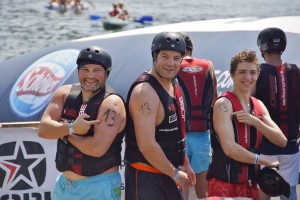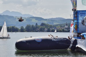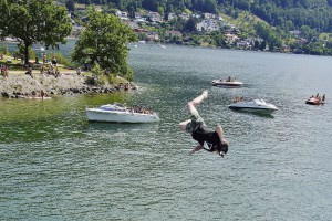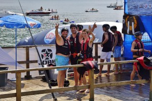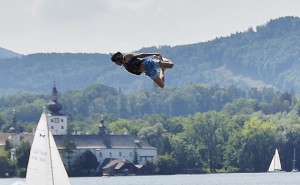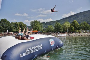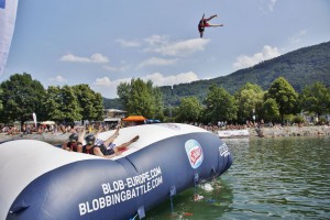Noch nie etwas von Blobbing gehört? Nun, im Wasser schwimmt ein zwölf Meter langer Luftschlauch, der Blob. Am vorderen Ende sitzt der „Blobber“ und wartet auf den „Jumper“, der springt von einem Sprungturm auf das andere Ende des Blobs und katapultiert so den Blobber bis zu acht Meter in die Luft. Insgesamt waren 16 Teams angemeldet, wobei der Sieger in einem KO System ermittelt wird. Mit dabei war auch das Team „240 Plus“ bestehend aus Florian WERNER, Gerhart HINTERWIRTH als Jumper und Stefan KATZENHOFER als BLOBBER. Die gewichtigen Jumper Flo und Gerhart katapultierten Blobber Stefan bis zu 8 Meter in die Luft und die Landung war nicht gerade sanft. Das Team 240 Plus schaffte es bis in das Finale der besten Fünf.