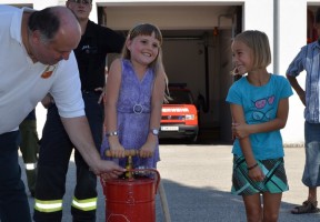 Das Highlight des Nachmittags war wie immer das Wasser. Ob mit Kübelspritze oder Hochdruck, Hauptsache Wasser und Spritzen. Nach der nassen Abkühlung, kalte Getränke und Eis, ging es im Tankwagen auf eine Spritztour durch Altmünster, um mit Tatü Tata wieder ins Sicherheitszentrum zurückzukehren.