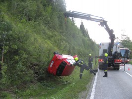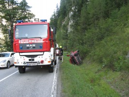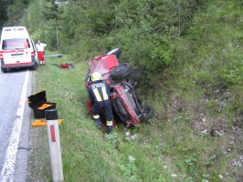 Zur Bergung eines PKW’s wurde am Samstag die FF St. Agatha alarmiert. Eine Goiserer Pensionistin war mit ihrem Fahrzeug auf der Pass Gschütt Bundesstraße B 166 von Gosaumühle Richtung Bad Goisern unterwegs. Dabei kam sie auf der linken Seite von der Fahrbahn ab und fuhr in einen Graben. Das Fahrzeug kippte um und blieb auf der Fahrzeugseite liegen. Weitere Verkehrsteilnehmer halfen der Pensionistin aus dem PKW. Beim Unfall erlitt die Lenkerin Verletzungen unbestimmten Grades. Nach einer ersten ärztlichen Versorgung wurde sie zur weiteren Behandlung durch das Rote Kreuz in das Krankenhaus Bad Ischl gebracht.
