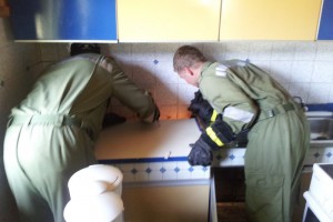 Am Samstagmittag entdeckte eine Hausbesitzerin in ihrer Küche eine riesige Schlange. Geschockt verständigte sie mittels Notruf „122“ die Feuerwehr-Landeswarnzentrale Linz.