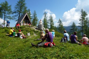 Die traditionelle Bergmesse am Gosaukamm wurde heuer am 21. Juli gefeiert. Mehr als 100 Teilnehmer machten sich auf den anstrengenden Weg zur Gedenkkapelle für alle verunglückten Bergsteiger. Vom Gosausee aus führt der Weg etwa 2,5 Stunden auf schönem Steig zur etwa 1.500 m hoch gelegenen Kapelle. Schon seit 1974 feiert Pfarrer Franz Hörtenhuber dort die hl. Messe zum Gedenken an Ludwig Feichtinger, der dort 1964 verunglückt ist.