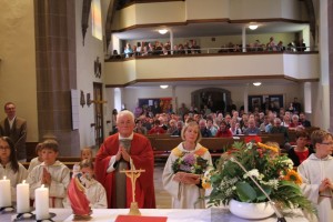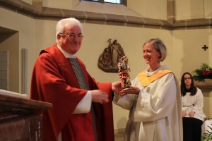 Mit Ende August beendete die beliebte Regauer Pfarrassistentin Barbara Hofwimmer ihre langjährige Tätigkeit in der Pfarre. Aus diesem Grund wurde gleichzeitig mit dem Patrozinium der Pfarrkirche zu Peter und Paul ihr Dank-und Abschiedsgottesdienst gefeiert. Viele Gläubige brachten ihre Wertschätzung durch die Teilnahme an diesem feierlichen Dankgottesdienst zum Ausdruck, der von den pfarrlichen Gruppierungen gestaltet wurde. Einen gemütlichen Ausklang fand das Fest bei einer Agape mit den vielen Kirchenbesuchern am Kirchenvorplatz und mit einigen Musikstücken der Bürgerkorpskapelle. Herr Pfarrer KonsR Franz Hörtenhuber überreichte als Geschenk eine Statue der hl. Barbara, die er für sie anfertigen ließ.