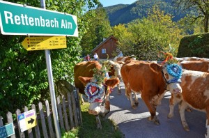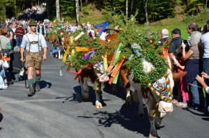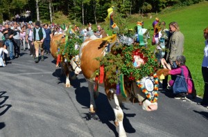 „Da Summa is umma, i muss obi ins Tal“ heißt es in einem alten Volkslied, das Bezug auf das Saisonende auf den Almen nimmt. Jedes Jahr zu Beginn des Herbstes werden die Kühe zur Überwinterung ins Tal getrieben. Wenn der Sommer für Vieh und Mensch ohne Unfälle verlaufen ist, dann werden die Tiere dafür prächtig geschmückt.