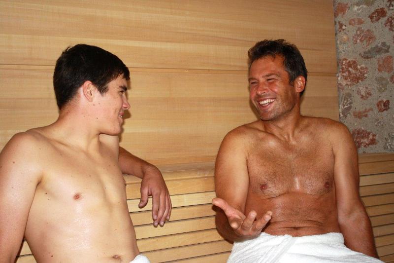 Hannes Trinkl, 185cm groß und 85 Kilogramm Muskelmasse gastierte kürzlich am schönen Traunsee für ein exklusives Fotoshooting. In der kommenden Saision 2013/14 unterstützt sentiotec, eine Tochter des Regauer Unternehmen abatec group AG als Kopfsponsor das Nachwuchstalen Michael Offenhauser. Der Regauer ist Österreichischer Junioren-Staatsmeister SuperG 2013. Offenhauser durfte daher mit niemanden geringeren als Hannes Trinkl in die Sauna für ein exklusives Fotoshooting.