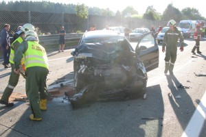 Ein folgenschwerer Unfall ereignete sicham Freitagnachmittag gegen 17:15 Uhr auf die Westautobahn (A1) in Richtungsfahrbahn Wien kurz vor der Ausfahrt Seewalchen. Ein ungarischer PKW mit Anhänger hatte Ladegut verloren, sodass die nachkommenden Fahrzeuge stark abremsen mussten.