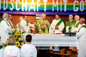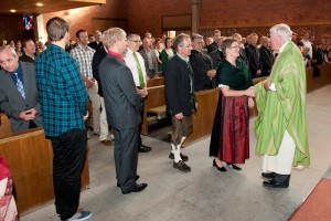 Die Mitglieder des Pfarrgemeinderates gelobten dem neuen Pfarrer mit Handschlag die Mitarbeit zum Wohle der Pfarre. Bei der anschließenden Festmesse, die in Konzelebration aller anwesenden Priester (Propst KR. Johann Holzinger, Stift St. Florian, Dechant P. Mag. Josef Kampleitner CSsR, Pfarrer Dr. Franz Leitner, Vöcklabruck, Pfarrer Mag. Karl Arbeithuber, Niederwaldkirchen, P. Franz Ruthofer SDB, P. Johann Stummer SDB, Diakon Bernhard Pfusterer, Diakon Dr. Herbert Seiringer, Wortgottesdienstleiterin Ottilie Eder und Pfarrer Mag. Josef Kramar) gefeiert wurde, brachten sich der Kirchenchor, der St. Anna Chor und der Jugendchor abwechselnd als Mitgestalter der Messe ein. Die Goldhaubengruppe mit Obfrau Eva Wiesauer-Holzleitner umrahmte das Fest mit ihrer Tracht ganz besonders.