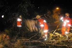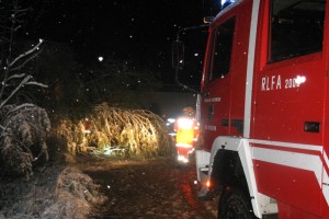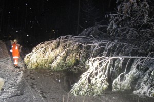 Gegen 2:45 Uhr langte die erste Alarmmeldung bei der Feuerwehr ein. Im Ortsteil Gschwandt blockierten an zahlreichen Stellen Bäume und heruntergebogene Äste die Fahrbahn. Zusammen mit der FF Ramsau wurden die Hindernisse beseitigt und so die Straße wieder frei gemacht. Noch während dieser Arbeiten langten weitere Alarmmeldungen ein, sodass die FF Bad Goisern – aufgeteilt in mehrere Gruppen – zahlreiche weitere Hilfeleistungen im Einsatzgebiet abarbeiten musste.