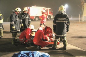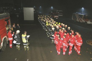 Insgesamt nahmen 9 Feuerwehren mit 12 Fahrzeugen sowie 4 Fahrzeuge des Roten Kreuzes mit insgesamt 120 Mann an der Übung teil.