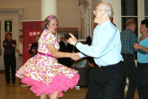Reinhard Pirnbacher und seine Edith Schiller spielten in der Ischler Trinkhalle  Raritäten auf Schellack und Vinyl aus ihrer privaten Sammlung. Aus diesem Schatz präsentierte „Pirni“ an diesem Abend, natürlich live, Oldies Musik vom Feinsten. An die 300 Personen vergnügten sich an diesem kurzweiligen Tanzabend. Auch Grüße, wie seinerzeit bei „Tanzmusik auf Bestellung“ oder Hörerwünsche, wurden natürlich an diesem Abend über den Äther gesandt.
