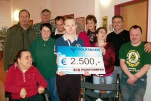 Um die Kosten für die Teilnahme finanzieren zu können, hat sich das Unternehmen Bau Pesendorfer mit einer Spende in Höhe von 2500 Euro in den Dienst der guten Sache gestellt. „Kommerzialrat Ingenieur Gallus Pesendorfer und Geschäftsführer Reinhard Köpl sind sehr angetan von unseren sportlichen Aktivitäten. Mit ihrer großzügigen Unterstützung rückt die Teilnahme an den Sommerspielen 2014 für uns immer näher“, bedankt sich Einrichtungsleiter Hans Schneider recht herzlich. Ebenso freuten durfte sich das Team über eine weitere Spende.