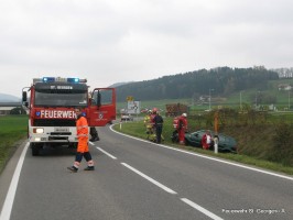 Die Freiwillige Feuerweher St. Georgen im Attergau wurde am Mittwochmittag zum Aufräumen nach einem Verkehrunfall auf die Ortsumfahrung alarmiert. Ein Fahrzeuglenkerin kam mit ihrem Auto aus noch ungeklärter Ursache auf das rechte Bankett, ins Schleudern kam und über die Gegenfahrbahn in den 2 Meter tiefen Graben schlitterte. Die Fahrzeuglenkerin wurde dabei unbestimmten Grades an der linken Hand verletzt.
