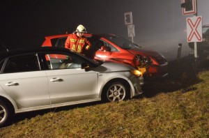 Kurz vor 19 Uhr wurden am Samstagabend die Vorchdorfer Florianis zu einem „Verkehrsunfall mit eingeklemmter Person“ alamiert. Drei PKW waren auf einem Bahnübergang zwischen Vorchdorf und Kirchham im dichten Nebel aus bisher ungeklärter Ursache zusammengestoßen. Am Unfallort stellte sich aber heraus, dass alle Unfallbeteiligten selbst aus den Fahrzeugen aussteigen konnten und unverletzt waren.