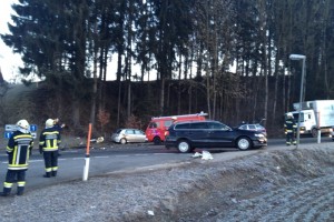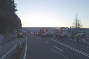 Der 43-Jährige wurde mit schweren Verletzungen in das Krankenhaus gebracht, seine 45-jährige Beifahrerin und der 21-Jährige erlitten Verletzungen unbestimmten Grades. An den Autos entstand Totalschaden. Der Verkehr wurde kurzfristig örtlich umgeleitet.