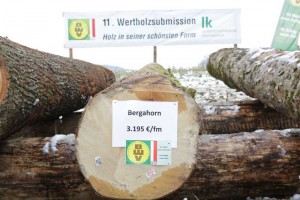 Das Höchstgebot von 3.195 Euro pro Festmeter erzielte ein Baumstamm aus Scharnstein. Als Auszeichnung nahm Marian Mittermayr den Titel „Holzmoar“ und die „Goldene Axt“ für einen sogenannten Riegelahorn entgegen. Riegelahorn-Stämme zeichnen sich durch im Stamm gewellt verlaufende Fasern aus. Durch den Lichteinfall auf die Schnittflächen entsteht ein spezieller optischer Eindruck, der das Holz vor allem für die Furniererzeugung so interessant macht. Riegelahorn findet sich in der Innenausstattung von Hochseejachten und Luxus-Limousinen.