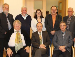 Im Bild die in neue Funktionen gewählten Seewalchner Gemeindevertreter mit Bürgermeister Mag. Johann Reiter (steh. v.l.n.r. Gemeindevorstand Ing. Kurt Berger, Oskar Resch, Stefanie Eicher, Rudolf Stockinger, Vbgm. Hans Schachl; sitzend UA-Obmann Sepp Hoyer, Bürgermeister Johann Reiter, Gemeindevorstand Dr. Oskar Vogel.