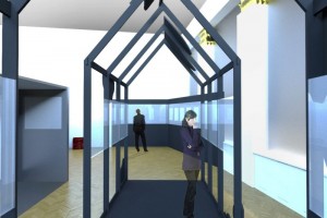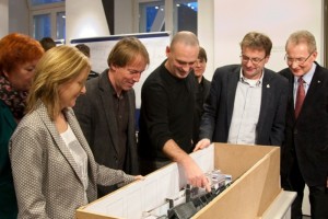 Das Konzept zur Innenraumgestaltung entwarfen Schülerinnen und Schüler der Abschlussklassen der HTL Hallstatt, die von DI Andreas Zohner und DI Martin Zopf betreut wurden. Am 27. Jänner stellten Simone Rieberer, Verena Stummer, Alexander Blacher und Matthias Meiß für die am Projekt beteiligen Schülerinnen und Schülern einem interessierten Publikum, darunter Bürgermeister Hannes Heide, die Stadträtinnen Ines Schiller und Brigitte Platzer, Direktor Mag. Jörg Zimmermann sowie den Kuratoren der Ausstellung Dr. Peter März und Mag. Patrick Bohn, ihre Ideen in einer gleichermaßen informativen wie eindrucksvollen Präsentation im Schauraum der Schule vor.