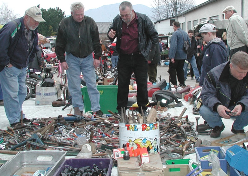 Ab 7 Uhr früh wird hinter der BP-Tankstelle Hollerweger gehandelt, gefeilscht, gesucht, getauscht und gekauft. Oldtimer-Fans machen so manches „Schnäppchen“, um den „historischen Liebling“ nach der Winterpause wieder flott zu bekommen oder erstehen gar ein fix und fertig restauriertes Motorrad.