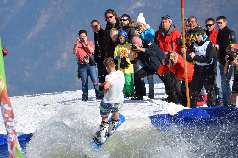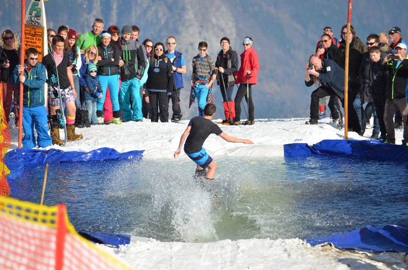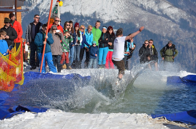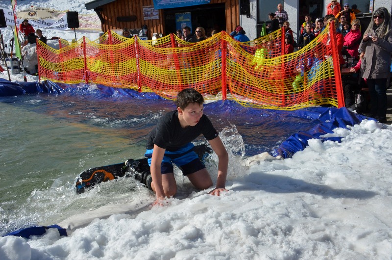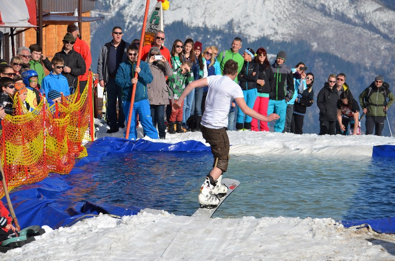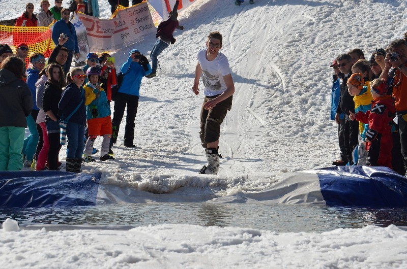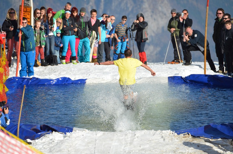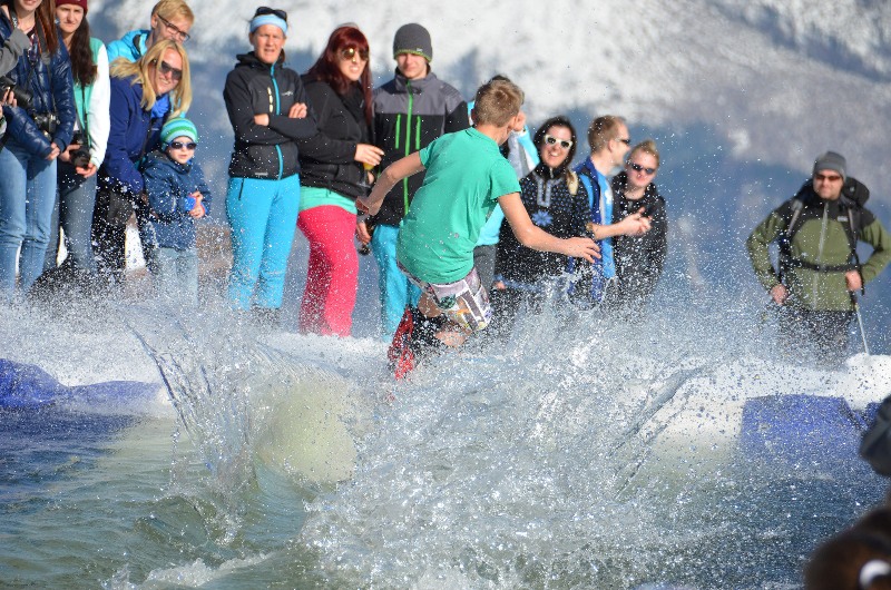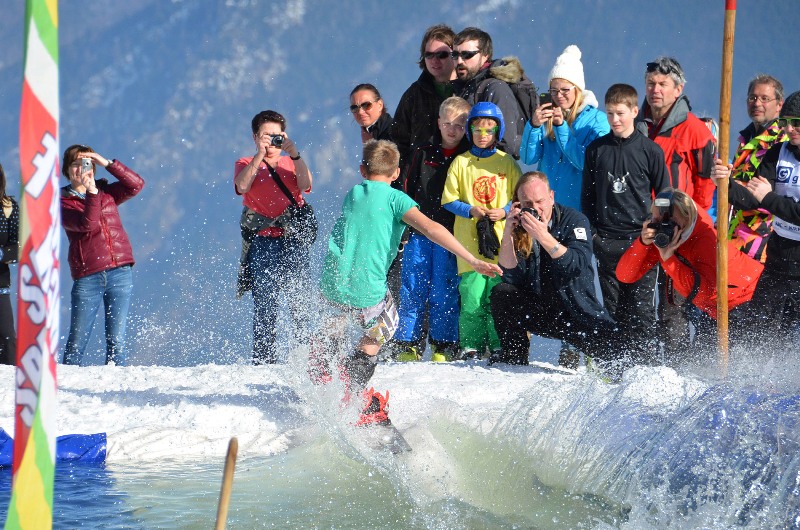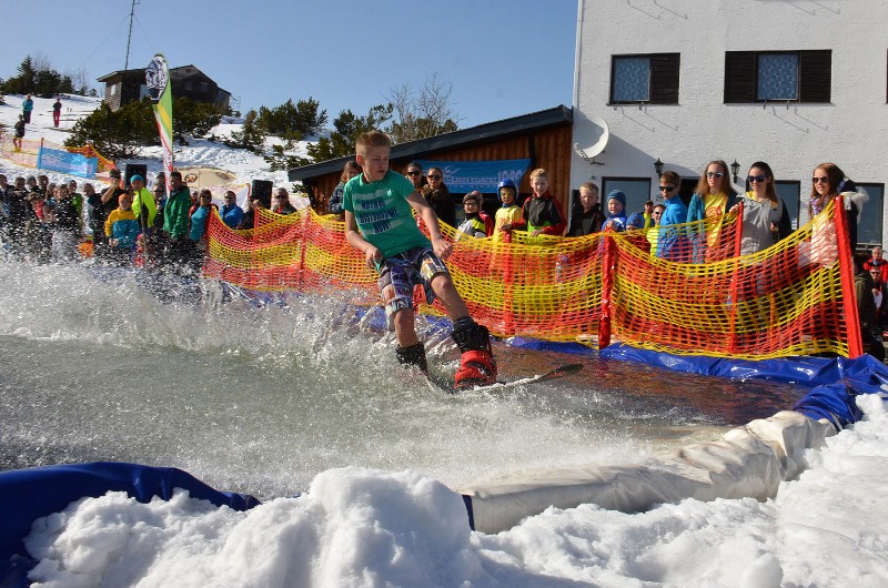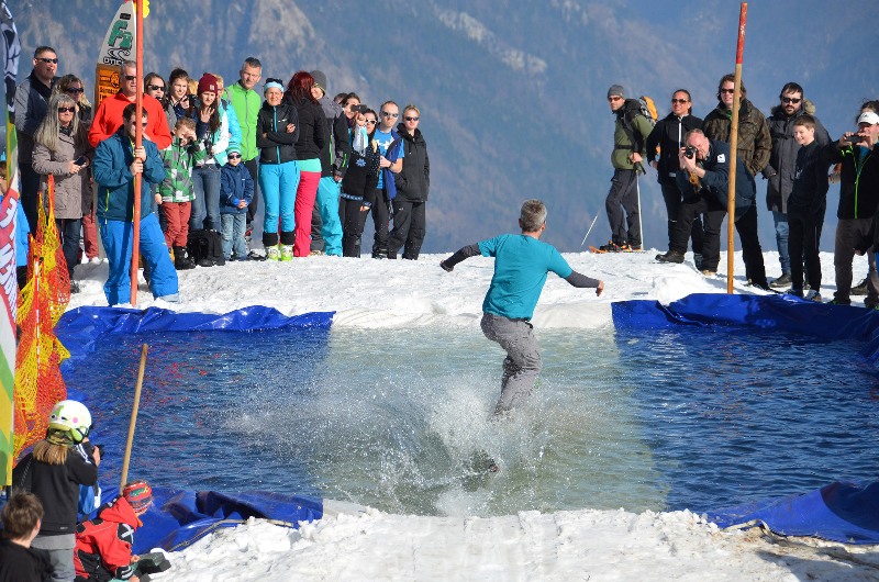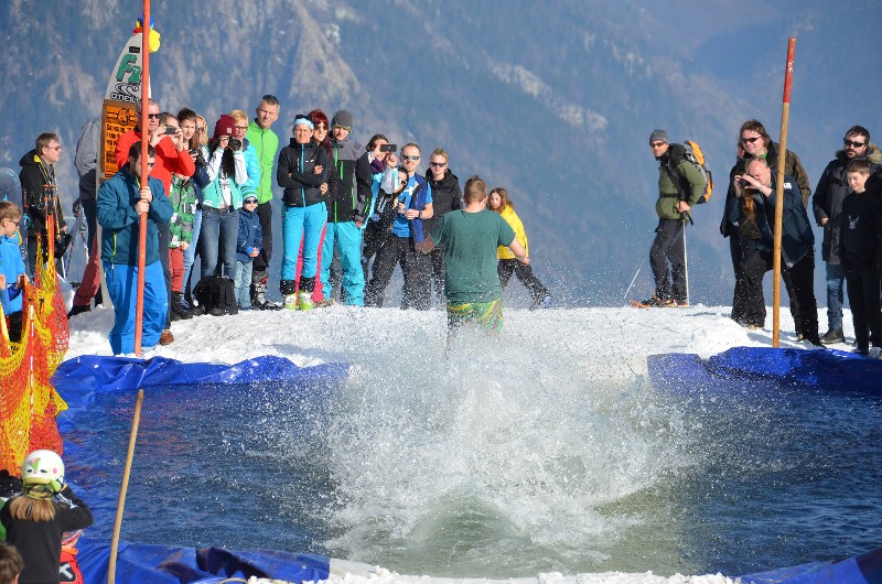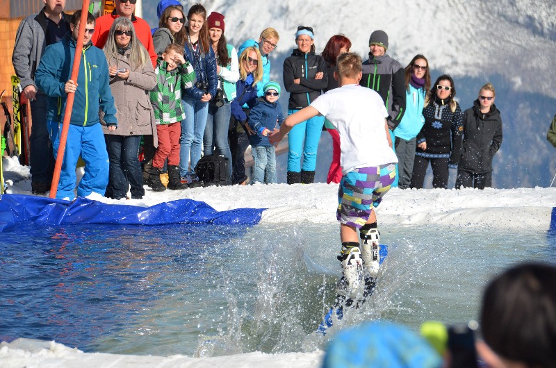 Bei diesem Bewerb zeigte sich, wer wirklich seine Schi oder sein Brett auf dem Schnee und auch auf dem Wasser beherrscht. Bei traumhaftem Sonnenwetter war der Watersplash wieder ein Gaudium für Teilnehmer und Besucher.