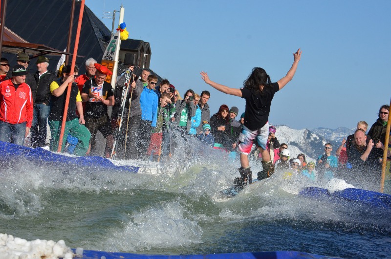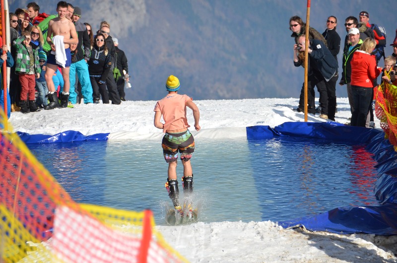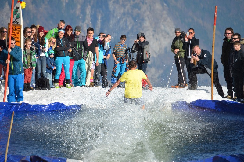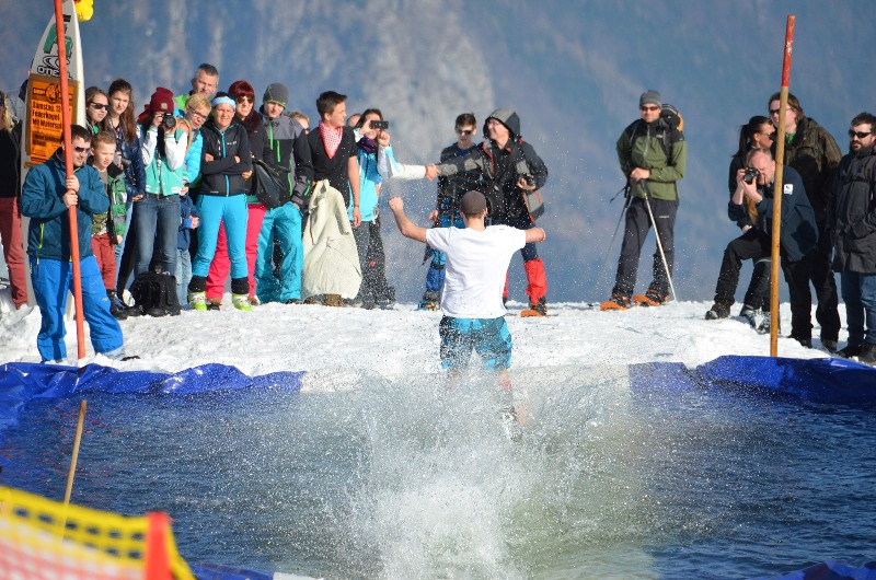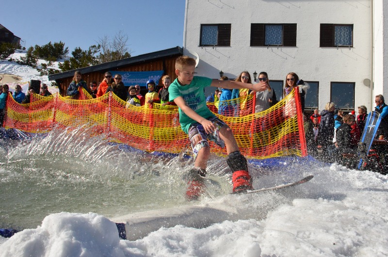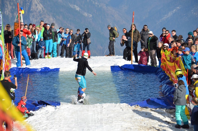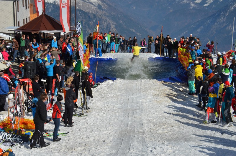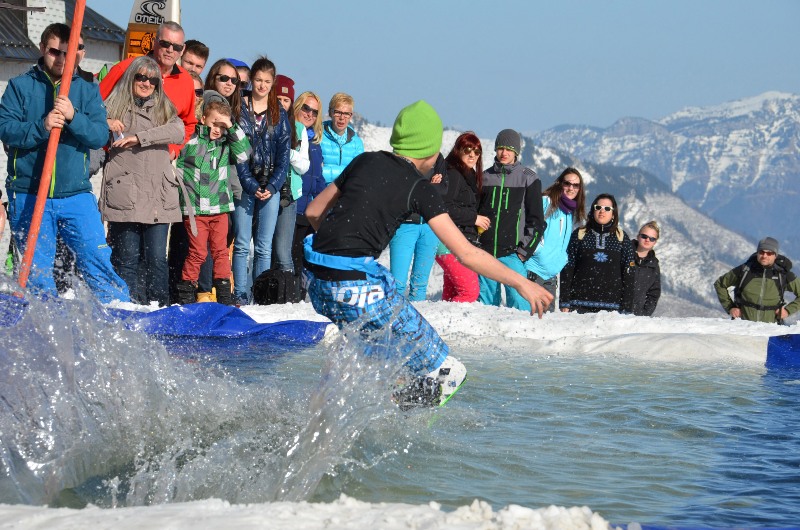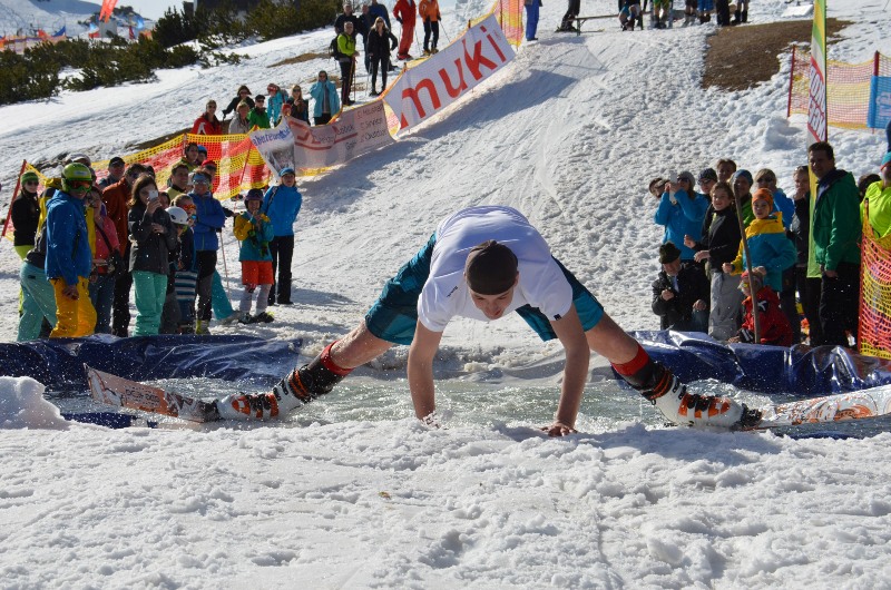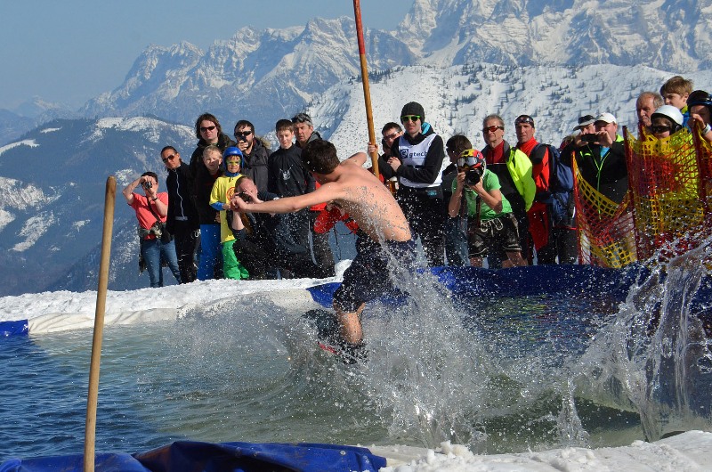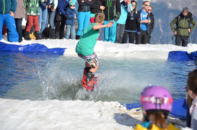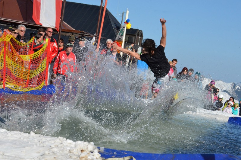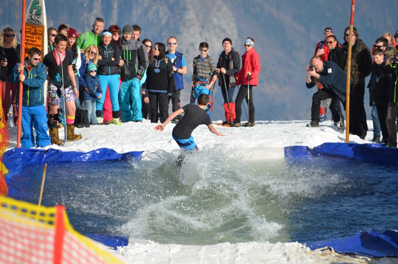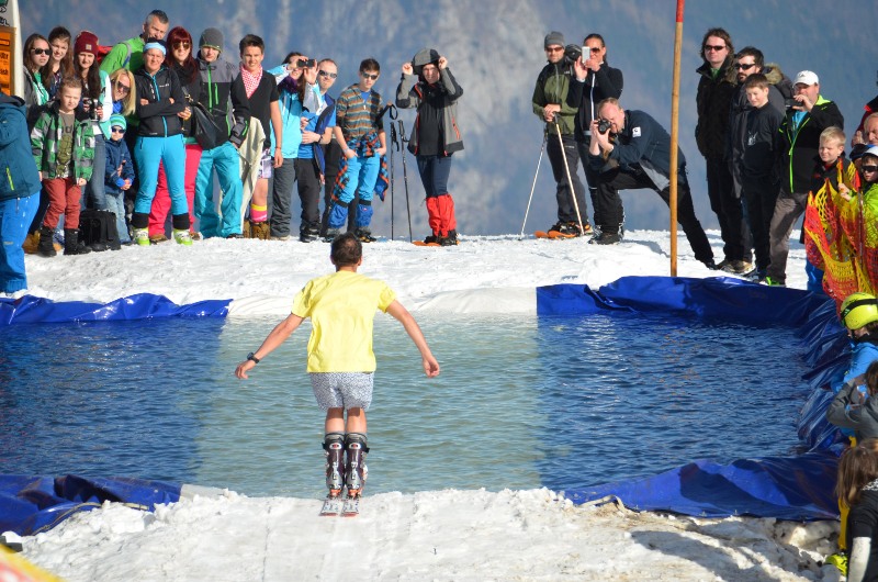 Bei diesem Bewerb zeigte sich, wer wirklich seine Schi oder sein Brett auf dem Schnee und auch auf dem Wasser beherrscht. Bei traumhaftem Sonnenwetter war der Watersplash wieder ein Gaudium für Teilnehmer und Besucher.